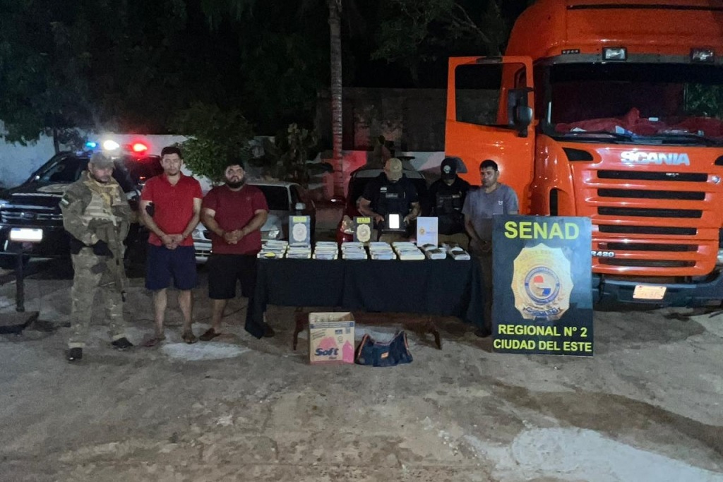 En el marco de la “Operación Dual”, fueron capturados 3 integrantes clave de una estructura criminal dedicada al tráfico internacional de drogas; incautaron dos tractocamiones utilizados para el traslado de estupefacientes con destino al Brasil; además de 24,5 kilos de cocaína y 5,5 kilos de marihuana tipo skunk, durante operativos simultáneos realizados en puntos estratégicos de Ciudad del Este, Alto Paraná.